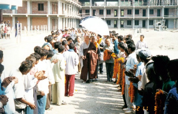 2002년 11월 조실이신 불심도문 법사님 제2요사채 대성마야부인당 상량법회 차 대성석가사 방문 . 인부들과 주민들이 나와서 불심도문 조실스님 오심을 환영.