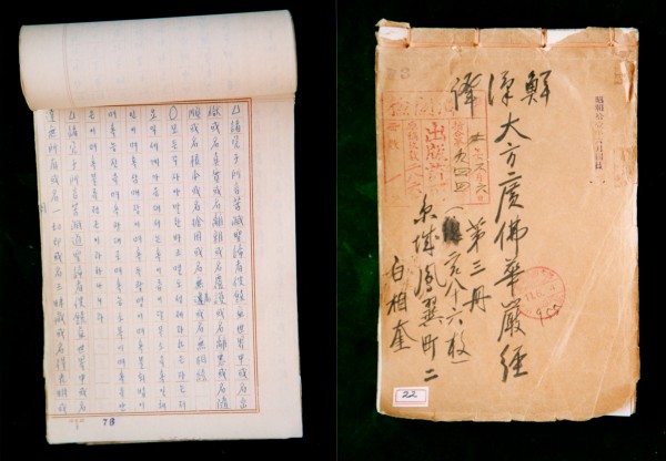 용성조사께서 집필한 대불광불 화엄경등 16 종의 친필 원고가 있다