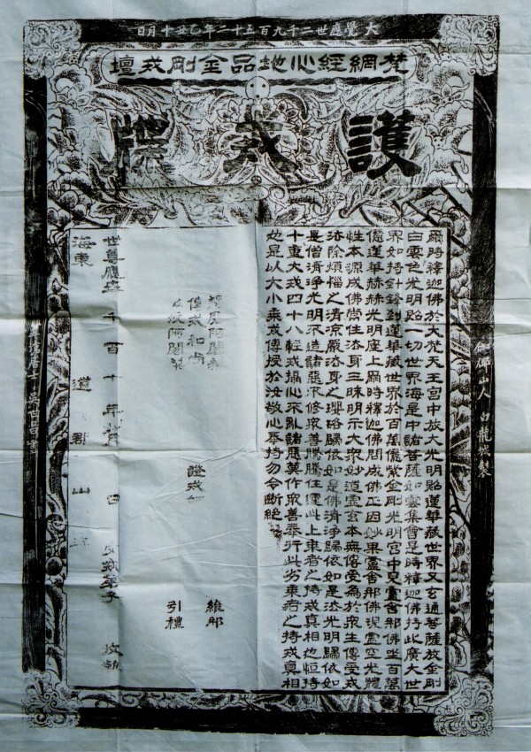 수법제자 동헌조사께서는 1941년으로부터 1960년도 까지 20여년간 3천명에게 3귀의5계를 수계하였으며, 그 수밥제자 불심도문법사는 1961년으로부터 현재까지 40여년동안 1백여만명에게 3귀의5계 수계법회를 하여 유훈실현을 잘 마치었다. 이 금강수계첩은 대승10중대계, 48경계의 수계첩이다.